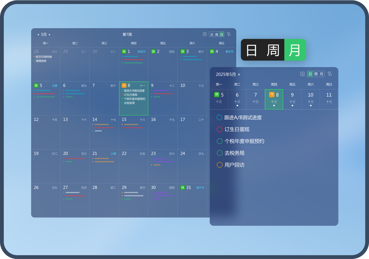 • 通過清單、象限、日歷等視圖對日程進行管理